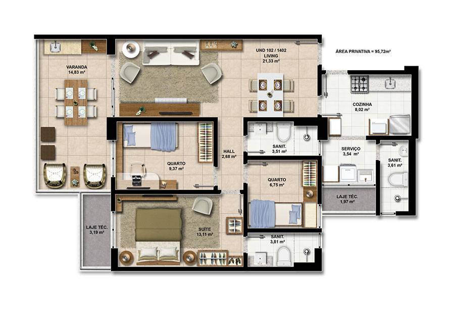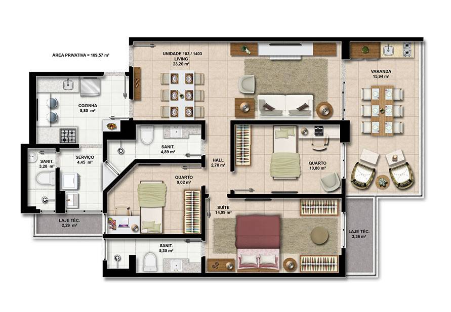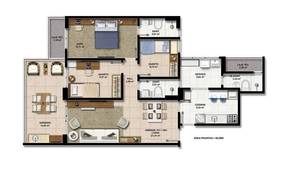 3 dormitórios (1 suíte)
